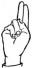 На ћирилици написано КОСТАДИН ПЕТРОВ састоји се из 14 слова [?]. Исписано ћириличном једноручном азбуком за глувонеме: